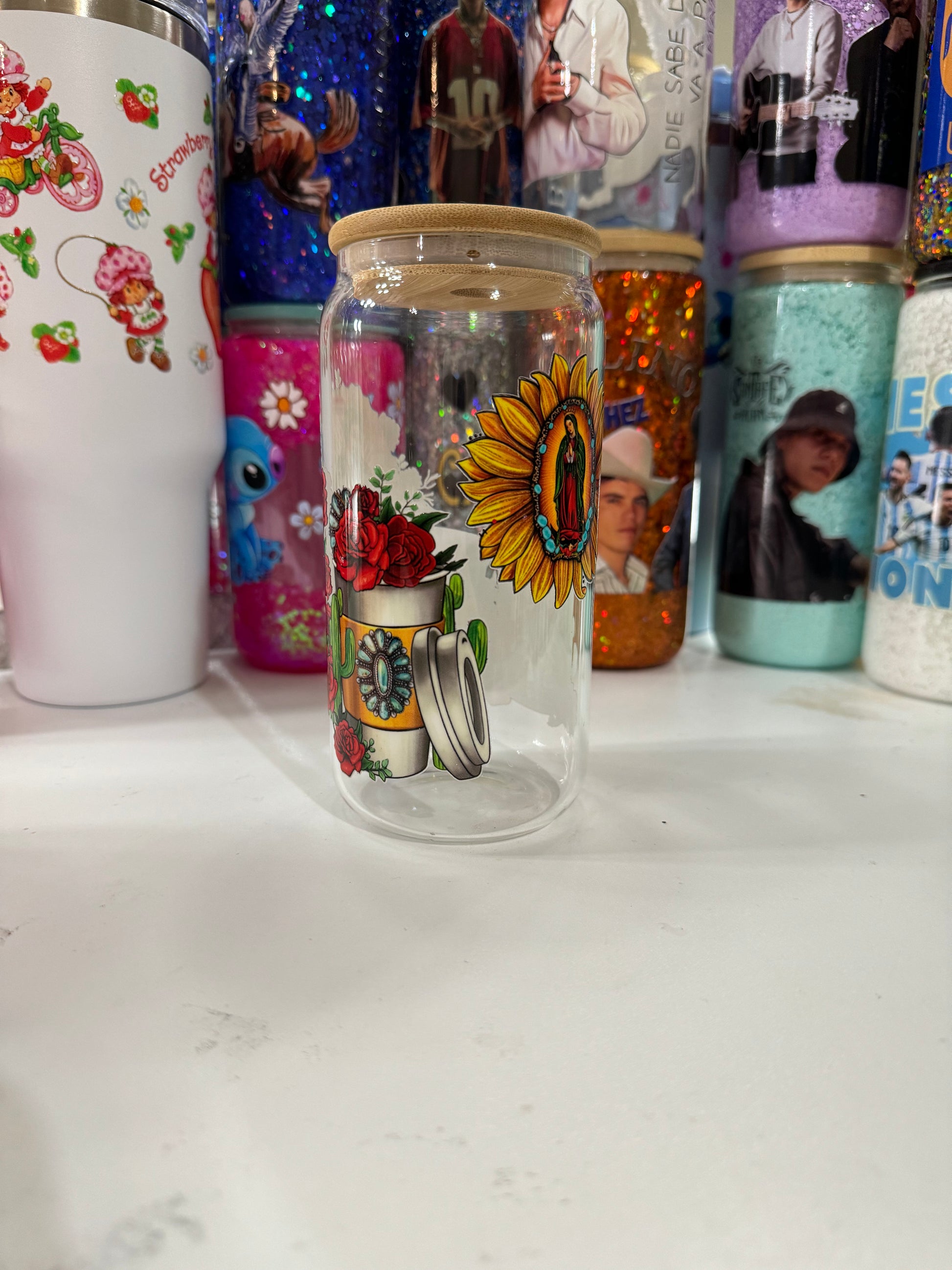 virgencita clear glass cup